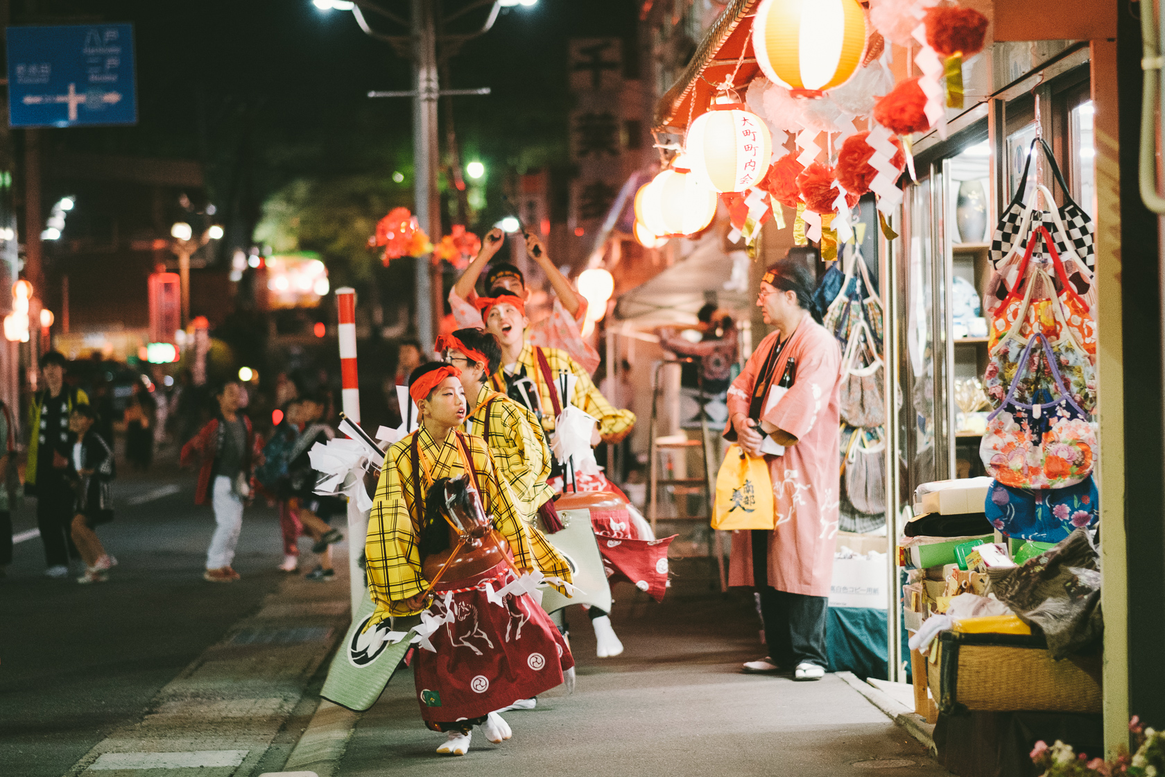 この祭の個人的クライマックスは、まつりの人混みが消え交通規制も解除された後の、いつもの静かな町に戻りつつある中で続く郷土芸能の門打ちです。