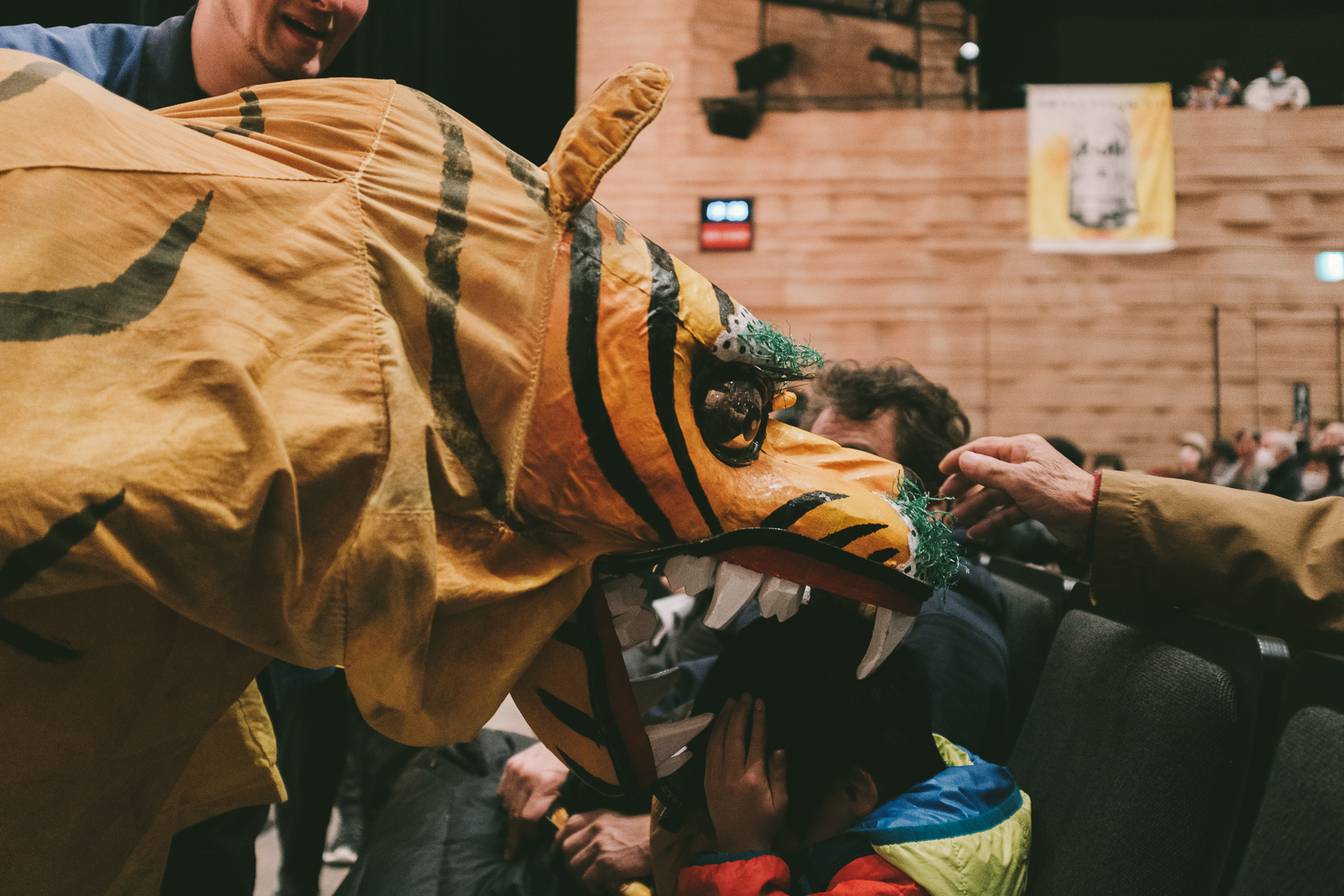 たっぷり時間をかけて客席降臨して頭を噛んで回ってくれました。しかしこの虎さん、牙が鋭くて痛そうです……