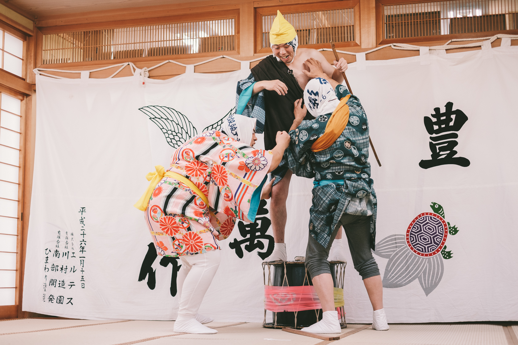今回、なんと38年ぶりに人肌地蔵(別名:壁塗り)の狂言が披露されました。38年も経っているので現在のメンバー全員が初挑戦ということですが、見事な熱演で思いっきり笑わせてもらいました。