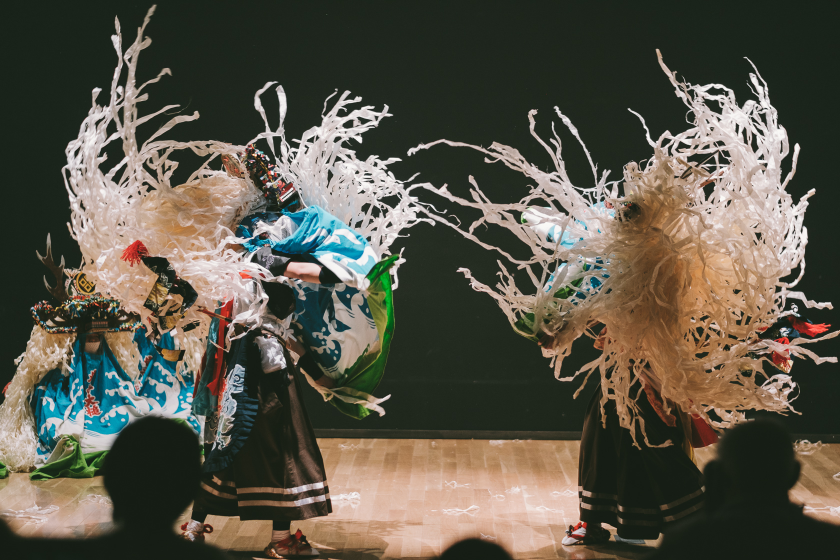 臼澤鹿子踊さん。ホールの控えめな照明の中で観るのもこれはこれで新鮮な感じ。演目は後立ち、祝入れ、小切り、大引端と言っていたように聞こえましたがちょっと自信ないです。