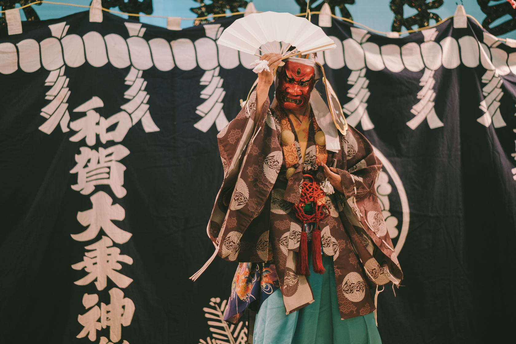 そんな大乗神楽団体が一堂に会するこの公演、本来は朝から夕方まで行われるところ、今回はコロナ禍により縮小して半日の開催となりましたが、こうして間近で貴重な神楽を見ることができて良かったです。