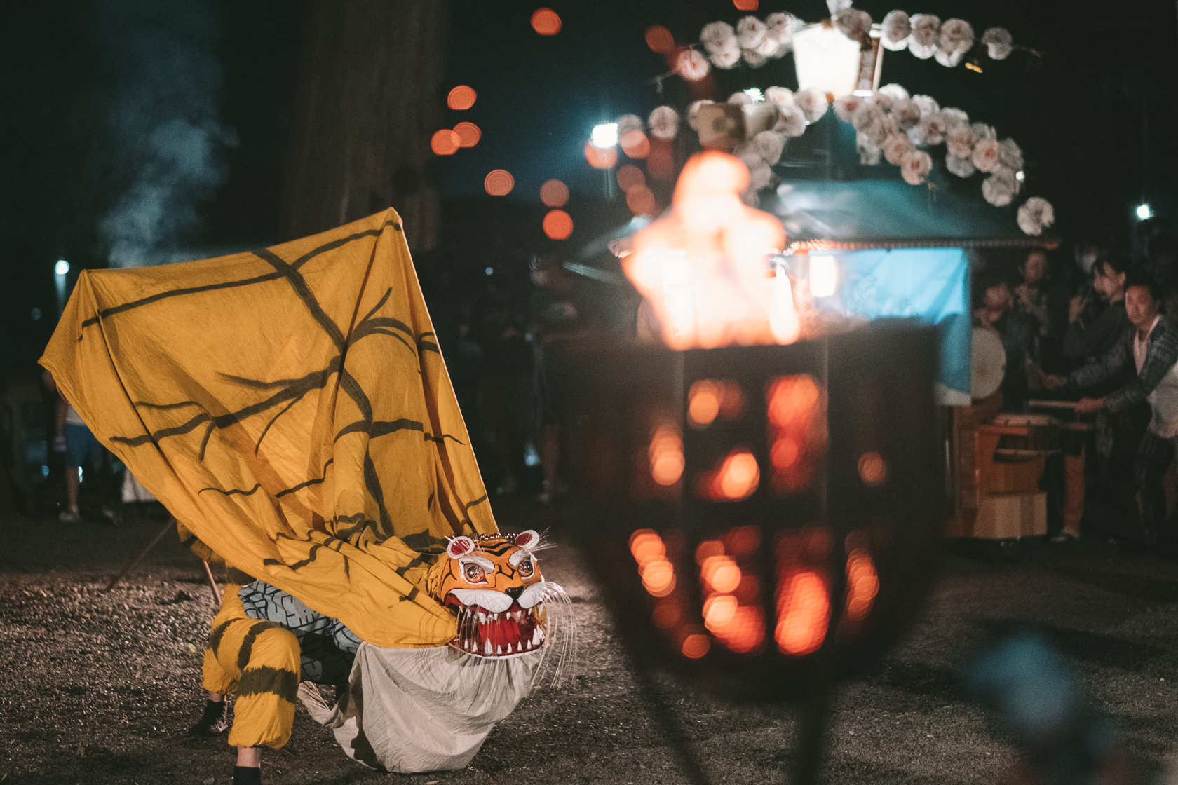 東北デスティネーションキャンペーンのイベントとして大槌町の小鎚神社で行われた「郷土芸能 かがり火の舞」の様子です。この日は安渡虎舞さんと浪板大神楽さんでした。