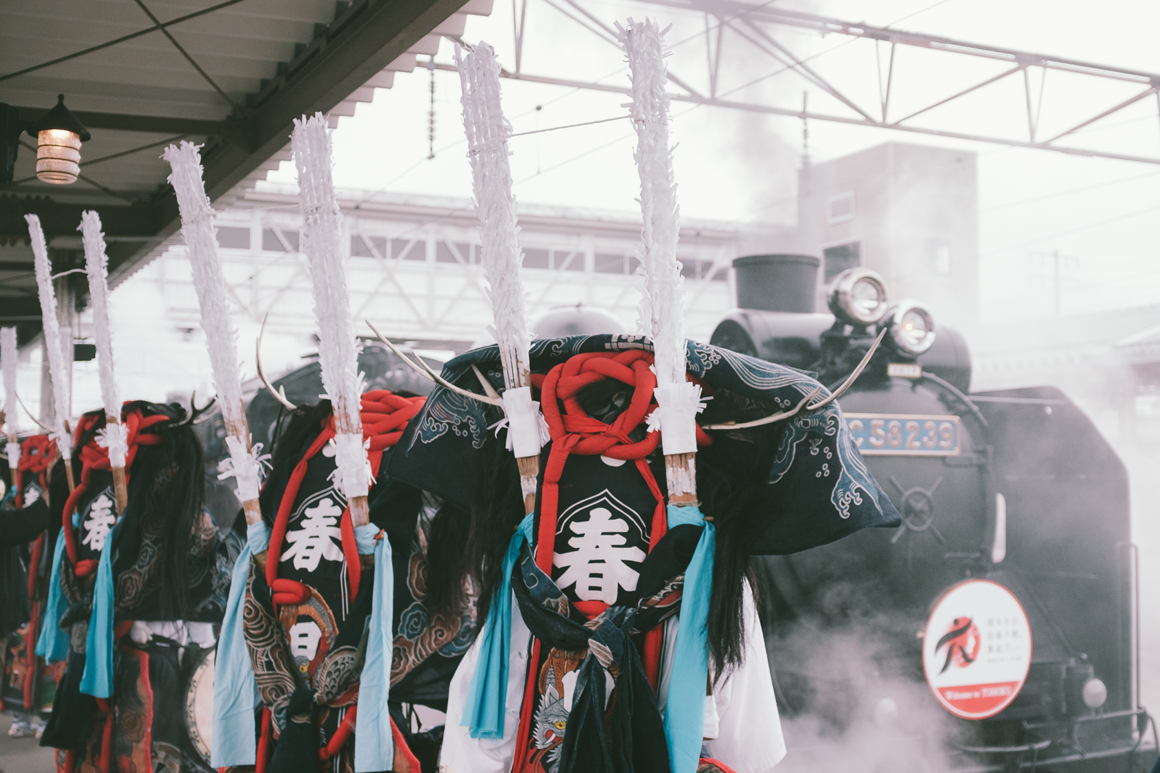 SLに付いてるヘッドマークが東北DC仕様の特別なものになっていて、鉄道ファンがその姿を写真に収めたりしていました……でも正直通常の青いやつのほうが車体ともシシのササラ巻の色とも合っていて好きですね。