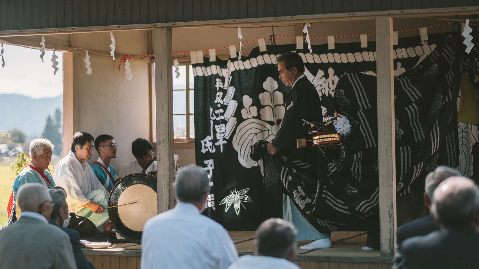 黄金の田園風景を背に観る神楽はいっそう美しく感じられ、幸せなひとときでした。