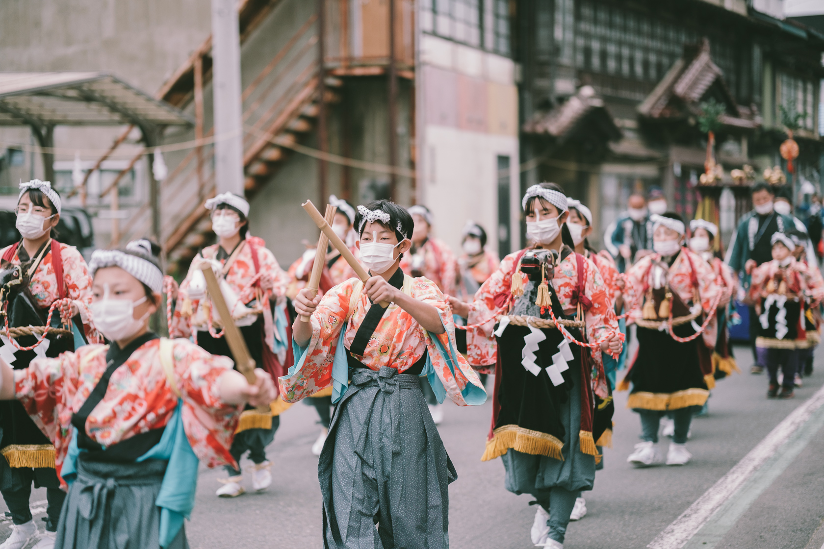沼宮内駒踊りのみなさんは神輿渡御での踊り披露は無し。でも軽快なお囃子と掛け声が明るい気持ちにさせてくれます。かつて馬も行き交ったであろう旧奥州街道の町並みがこれまた良く似合います。