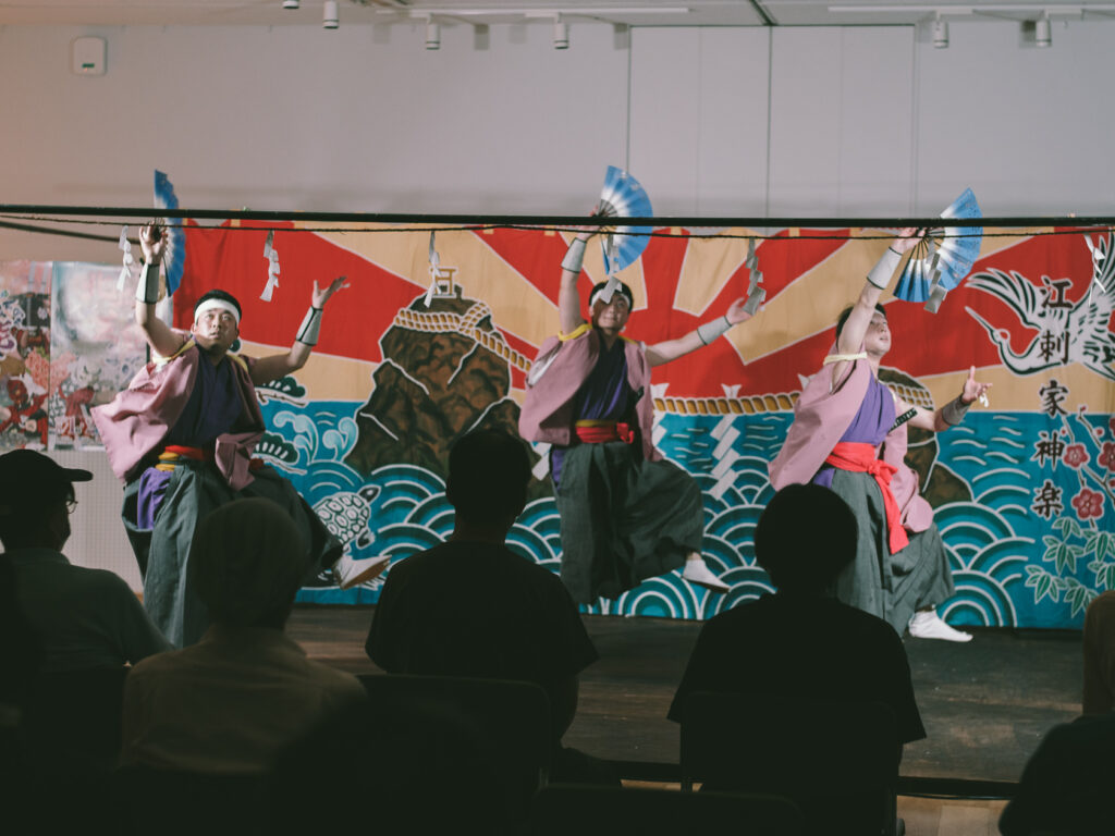 この日、観光で来ていた英国のヒップホップダンサー(右に写っているキャップを被った方)も体験で参加していました。短期間で習得できてしまうのはさすがダンサー。彼の目にこの異国の地のまつりや風景はどのように映ったのでしょうか……