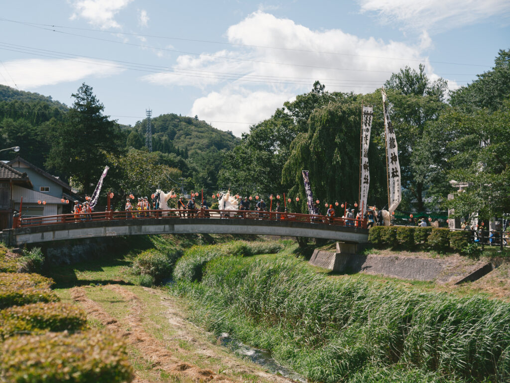 巖龍神社の巨大な不動岩に見守られるようにまっすぐ伸びる小友のまちなみがこれまた美しく、大好きなまつりです。