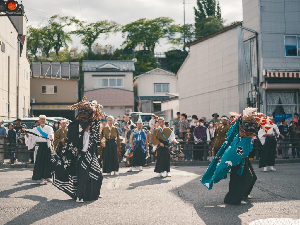 こちらは秋まつりの行列を先導する山根神楽の皆さん。