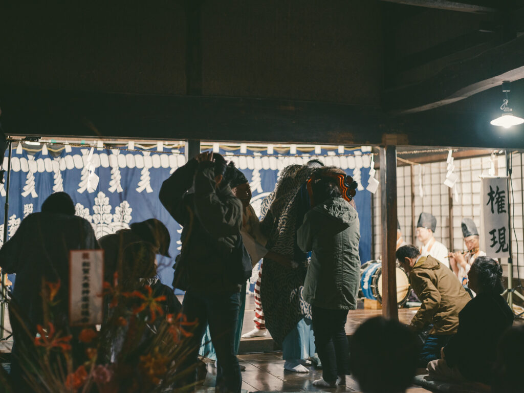 そして八幡平に行ったその日の夜、遠野へ。霊峰早池峰の山霊を祀る早池峯神社の神楽殿で夜更けまで神楽が演じられ、遠野の異界感を存分に味わえるまつりです。写真はあまり撮っていなかったので少しだけ。